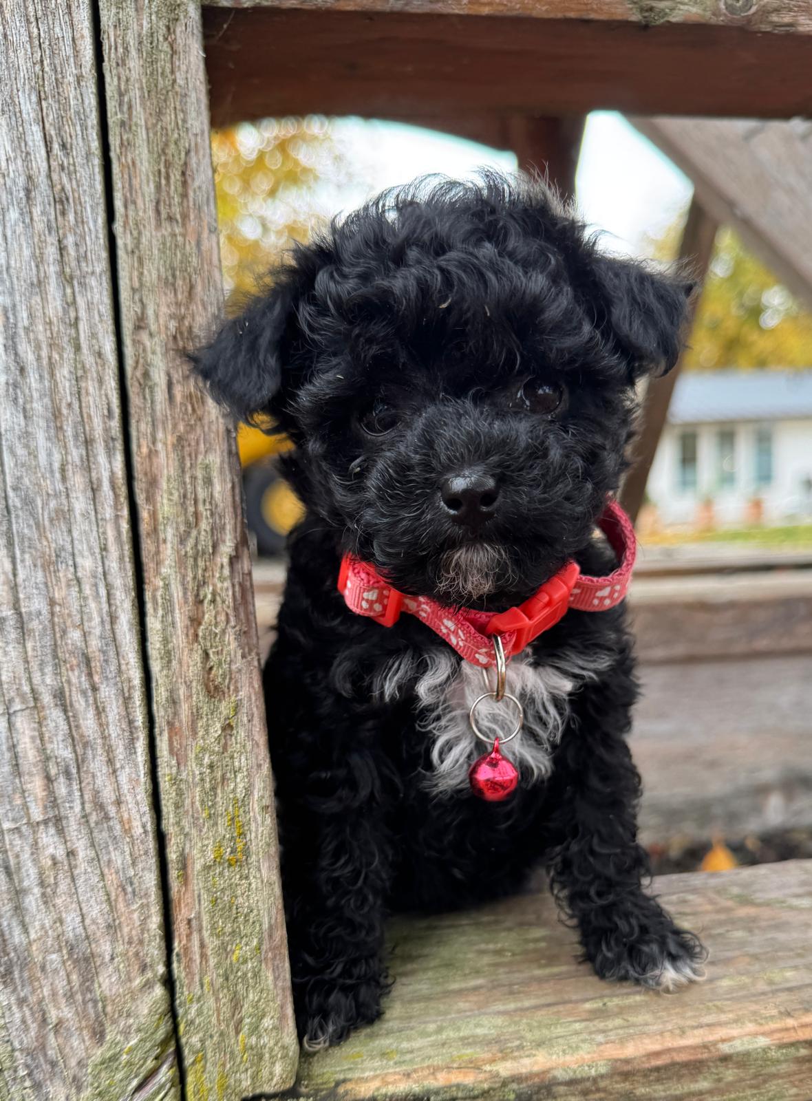 Pixie, born 9/17/2025, is sweet black girl with white highlights. She is cheerful and friendly, of petite size. She should mature between 6 – 8 pounds.