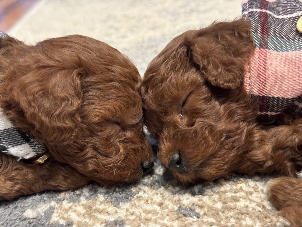 Puppy picks can happen virtually via video conference or in person in the 6-7th week, after temperament testing, in order of reservation. Waiting until the 6-7th week allow the puppies more time to show their temperament and allow you to get an idea on which pup is the best fit for your family. Vet checks are usually done the last week. This helps us ensure that the pups are healthy and ready to go when they finally join your family.Â